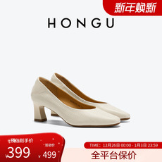 软羊皮浅口单鞋女2025秋季新款真皮方头粗高跟鞋